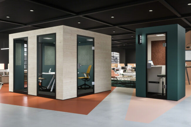 Durch Akustikkabinen ergänzt OFFICEBRICKS das Angebot an flexiblen Raumlösungen, die Privatsphäre und Komfort in offenen Büros schaffen. Die Kabinen bieten die Möglichkeit, produktive Zonen innerhalb des Büros zu schaffen und den akustischen Komfort für alle Mitarbeitenden zu steigern.
