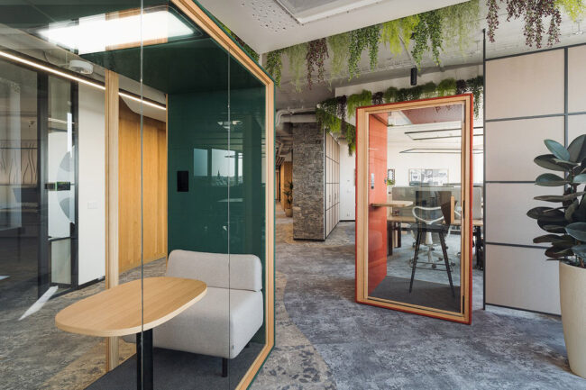 - Raum-in-Raum-Systeme für Telefonate, Meetings und Fokusarbeit