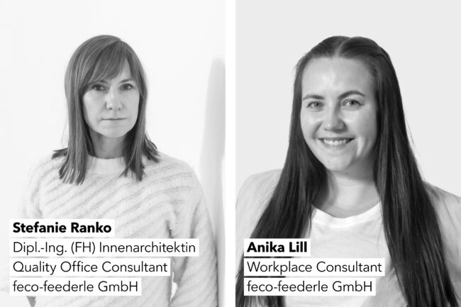 - Referentinnen: Stefanie Ranko, Dipl.-Ing. (FH) Innenarchitektin, Hochschule Düsseldorf, zertifizierte Arbeitsplatzexperin und Quality Office Consultant bei feco-feederle und Anika Lill, Workplace Consultant bei feco-feederle.