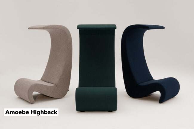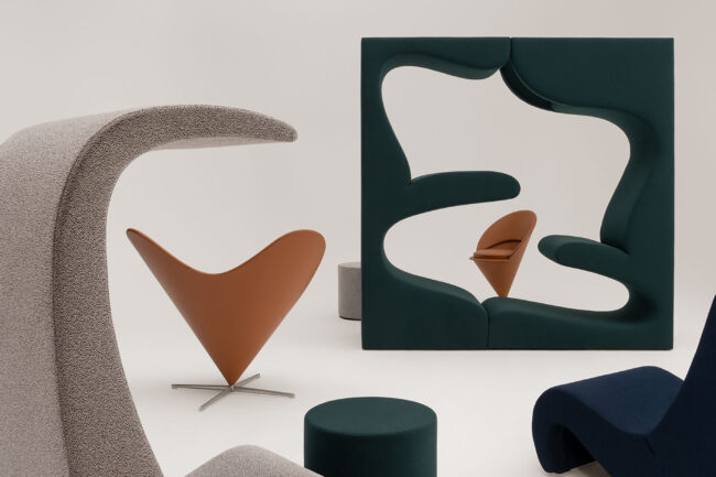 Zum Jubiläum erweitert Vitra die Panton Upholstery Collection um neue Materialien und Farbwelten. Bekannte Entwürfe wie Cone Chair, Heart Cone Chair, Amoebe oder Living Tower erscheinen dadurch in einem zeitgemäßen Kontext. Die erweiterten Bezugsoptionen eröffnen neue Einsatzmöglichkeiten – von wohnlichen Bereichen bis hin zu stark frequentierten Arbeitsumgebungen. Unterschiedliche Stoffqualitäten und Farben ermöglichen es, die ikonischen Möbel gezielt in moderne Raumkonzepte zu integrieren. So werden die Klassiker nicht nur bewahrt, sondern aktiv weitergedacht.