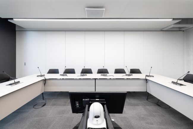 Untertitel: Die schallabsorbierenden Oberflächen der fecowand sorgen für optimale Sprachverständlichkeit.