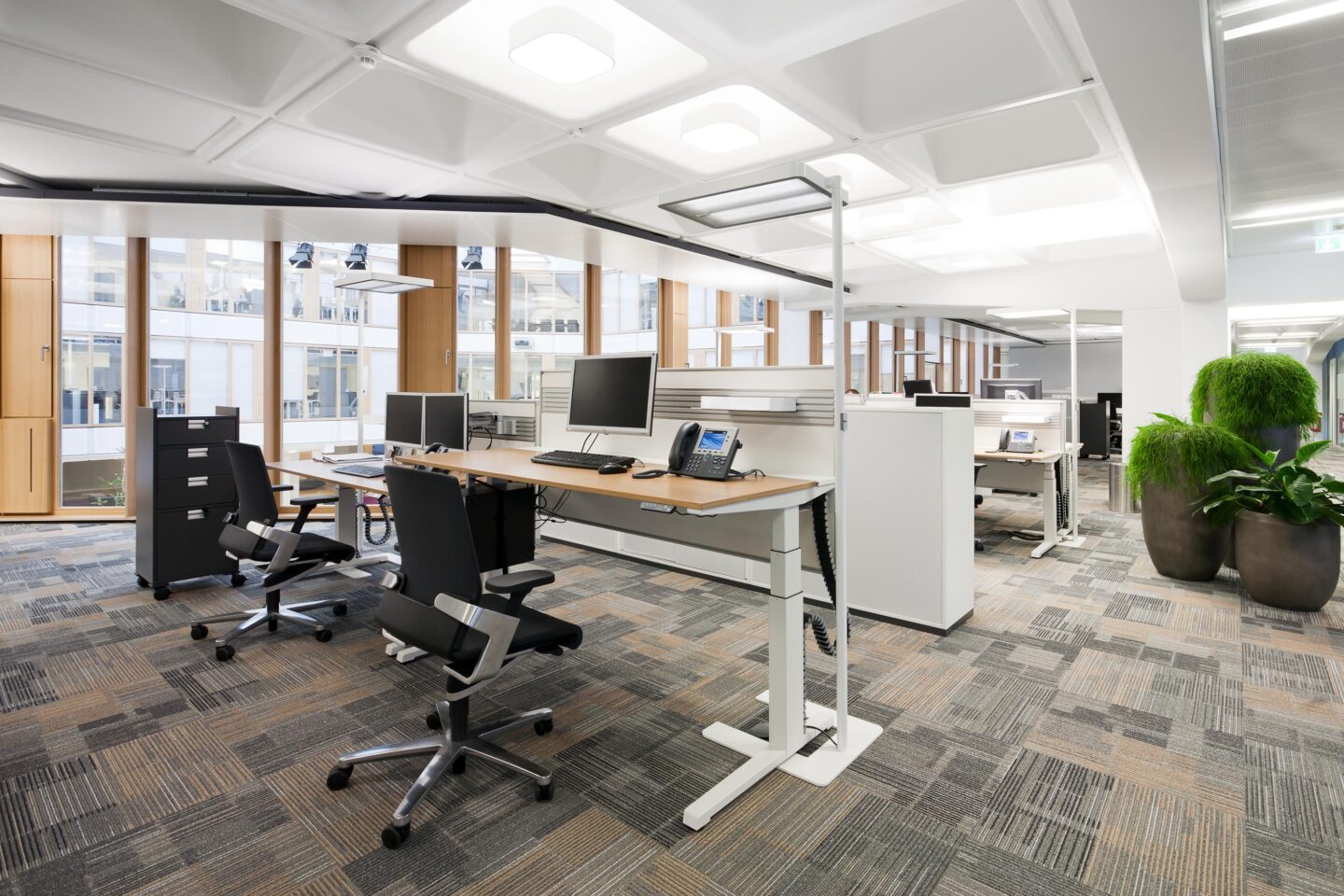 Die Versicherungsgruppe BGV mit Sitz in Karlsruhe bietet umfassenden Versicherungsschutz für Privat- und Firmenkunden aus ganz Deutschland. Mit der Sanierung des Hauptgebäudes wurde die Energieeffizienz deutlich verbessert und der Innenraum aufgewertet. Etwa 500 Mitarbeiter sind in eine neue Arbeitswelt eingezogen, die mit offenen Raumstrukturen für ein hohes Maß an Kommunikation und Austausch sorgt. Umfassende akustische Maßnahmen an Decke, Wand und im Mobiliar unterstützen die Arbeitsweise im offenen Raum. Think Tanks und verschiedene raumbildende Möblierungslösungen ermöglichen den Mitarbeitern Privatsphäre und Rückzug.