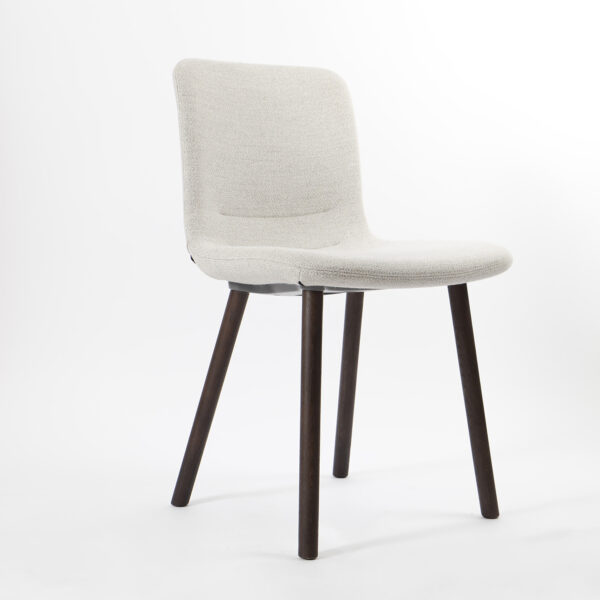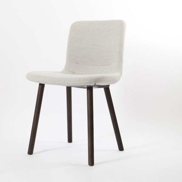 Mit HAL Soft Wood hat Jasper Morrison einen Stuhl entworfen, der Komfort und Wohnlichkeit verbindet. Die weich gepolsterte Sitzschale verleiht dem klassischen HAL eine neue Formensprache – einladend und elegant zugleich. Das massive Holzgestell in dunkel lackierter Eiche unterstreicht die natürliche Anmutung des Designs.