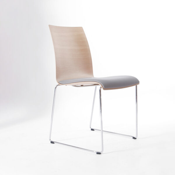 Das integrierte Sitzpolsterdoppel erhöht den Sitzkomfort spürbar und macht den Stuhl auch bei längerer Nutzung angenehm bequem. Das stapelbare Kufengestell aus 12 mm Vollstahl unterstreicht die klare Linienführung und sorgt gleichzeitig für Stabilität und Alltagstauglichkeit.
