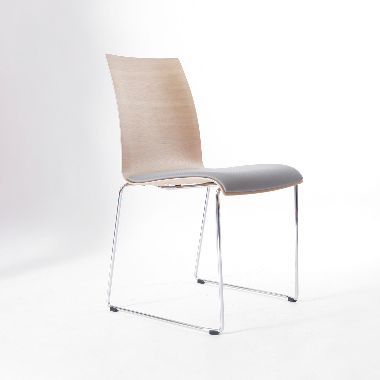Mit dem Modell 6414 zeigt die Brunner Kollektion fina ihre charakteristische Verbindung aus schlanker Ästhetik und funktionaler Klarheit. Die fein ausgearbeitete Formholzschale wirkt grazil, überzeugt jedoch durch ihre konstruktive Stabilität. In dieser Ausführung kombiniert das helle Eichen-Deckfurnier natürliche Wärme mit einem komfortablen Sitzpolsterdoppel im Stoff Dover.