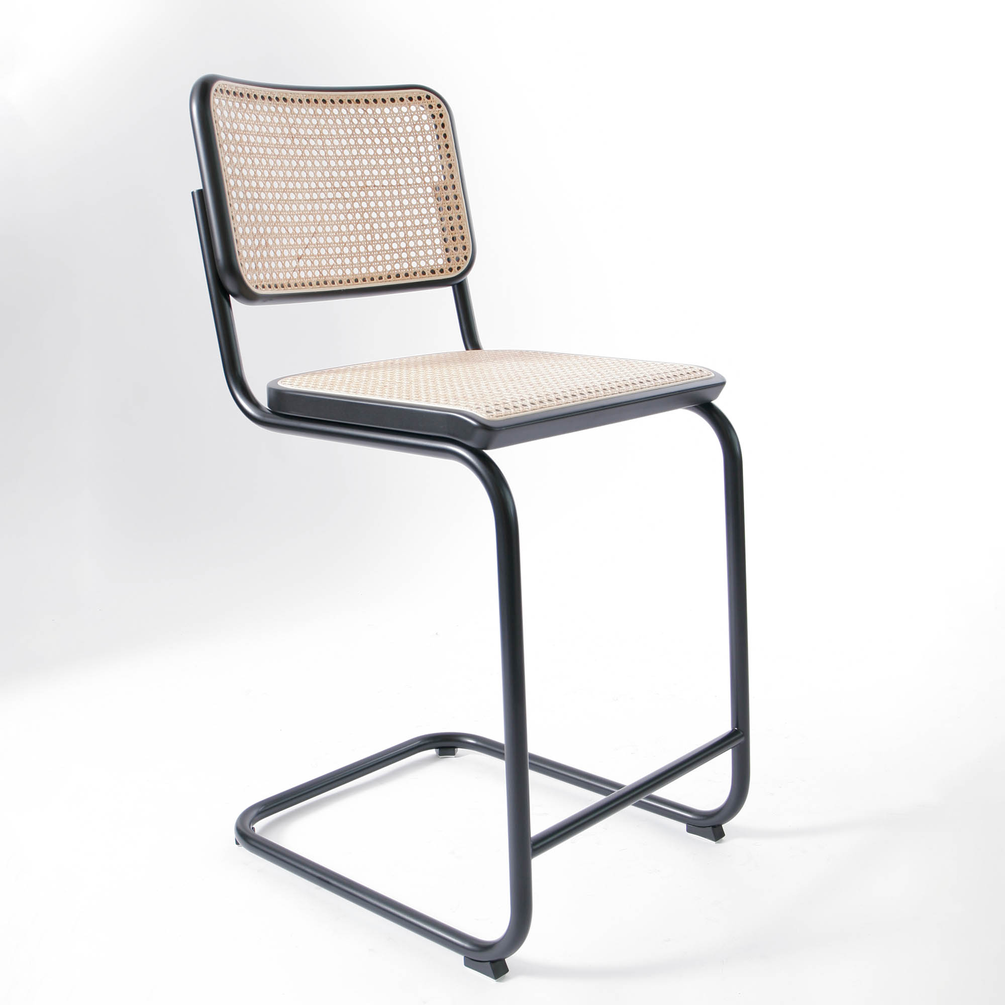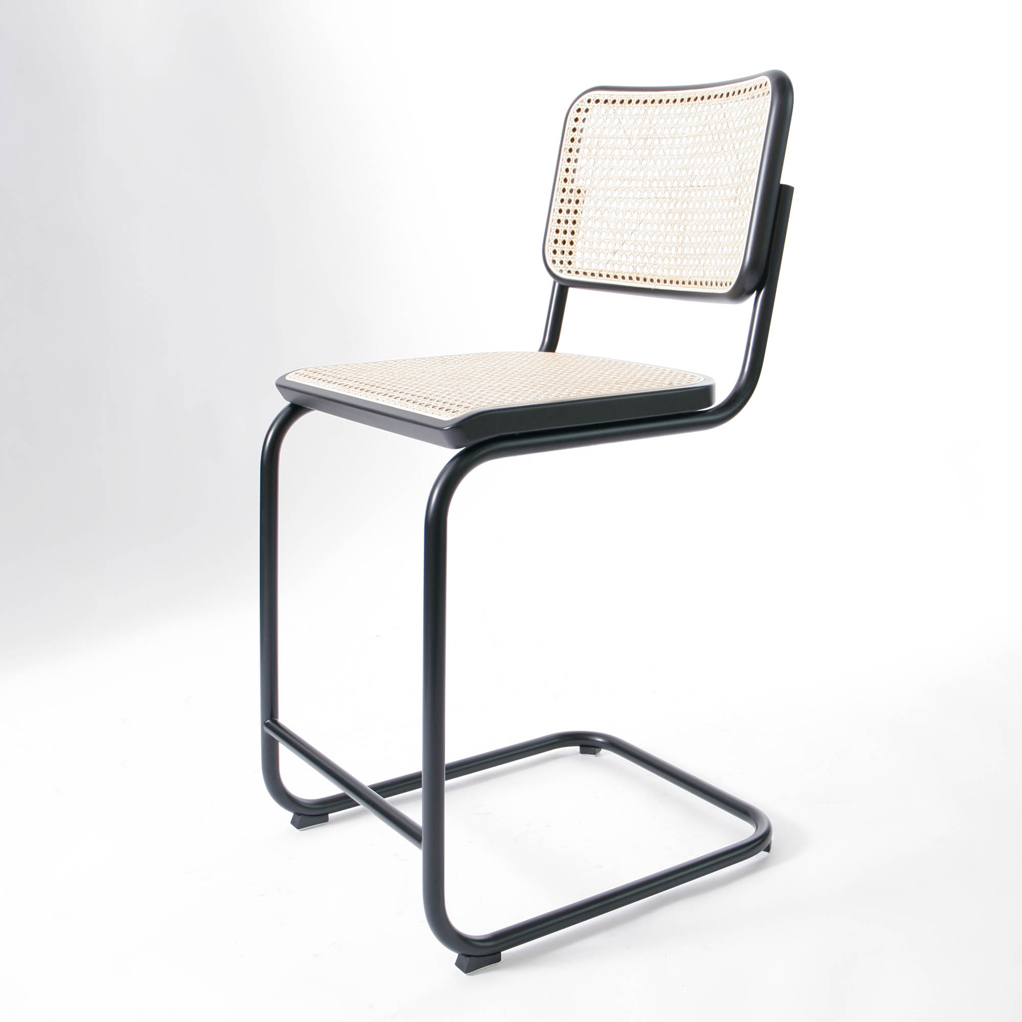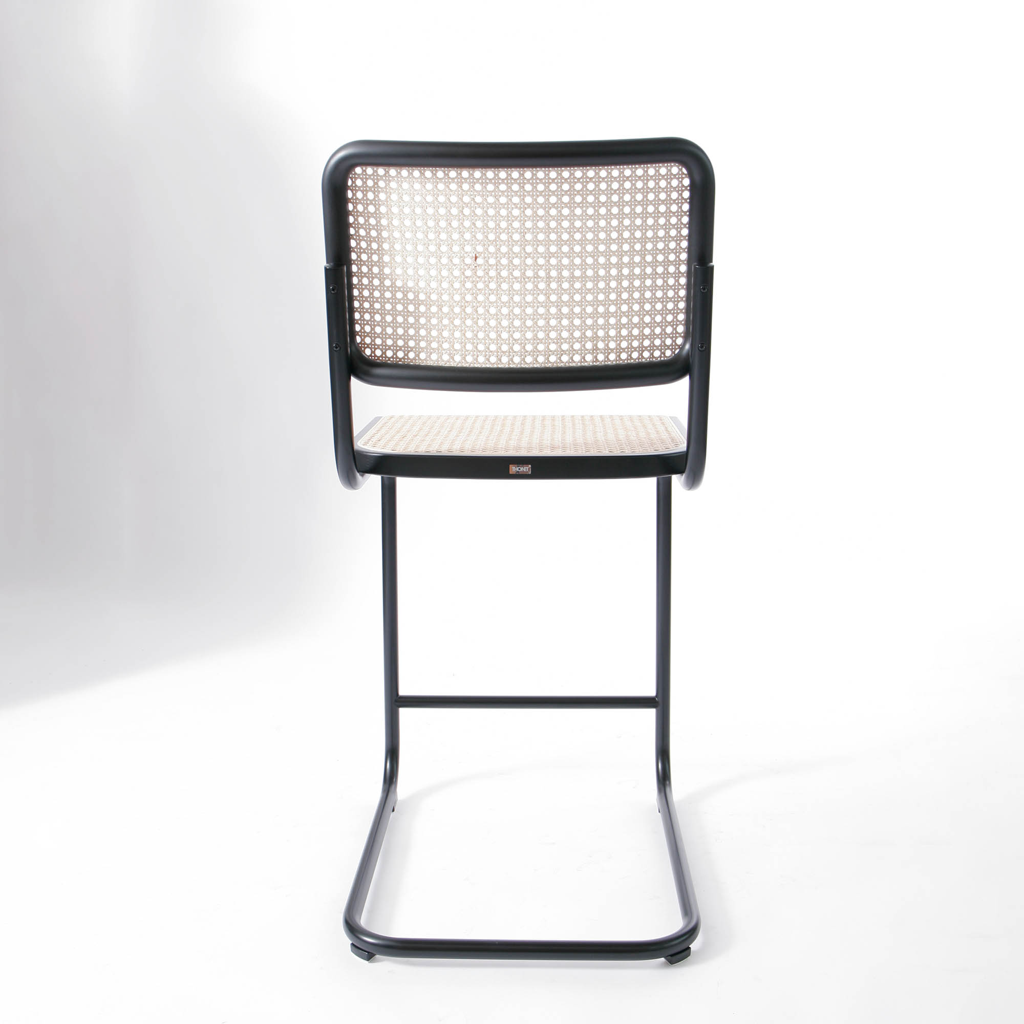 Der S 32 VH von Thonet ist die hochbeinige Variante eines der berühmtesten Freischwinger-Stühle der Designgeschichte. Die Materialkombination aus gebogenem Stahlrohr, elegantem Rohrgeflecht und warmem Holz verleiht dem Barhocker ikonischen Charakter mit zeitloser Ausstrahlung.