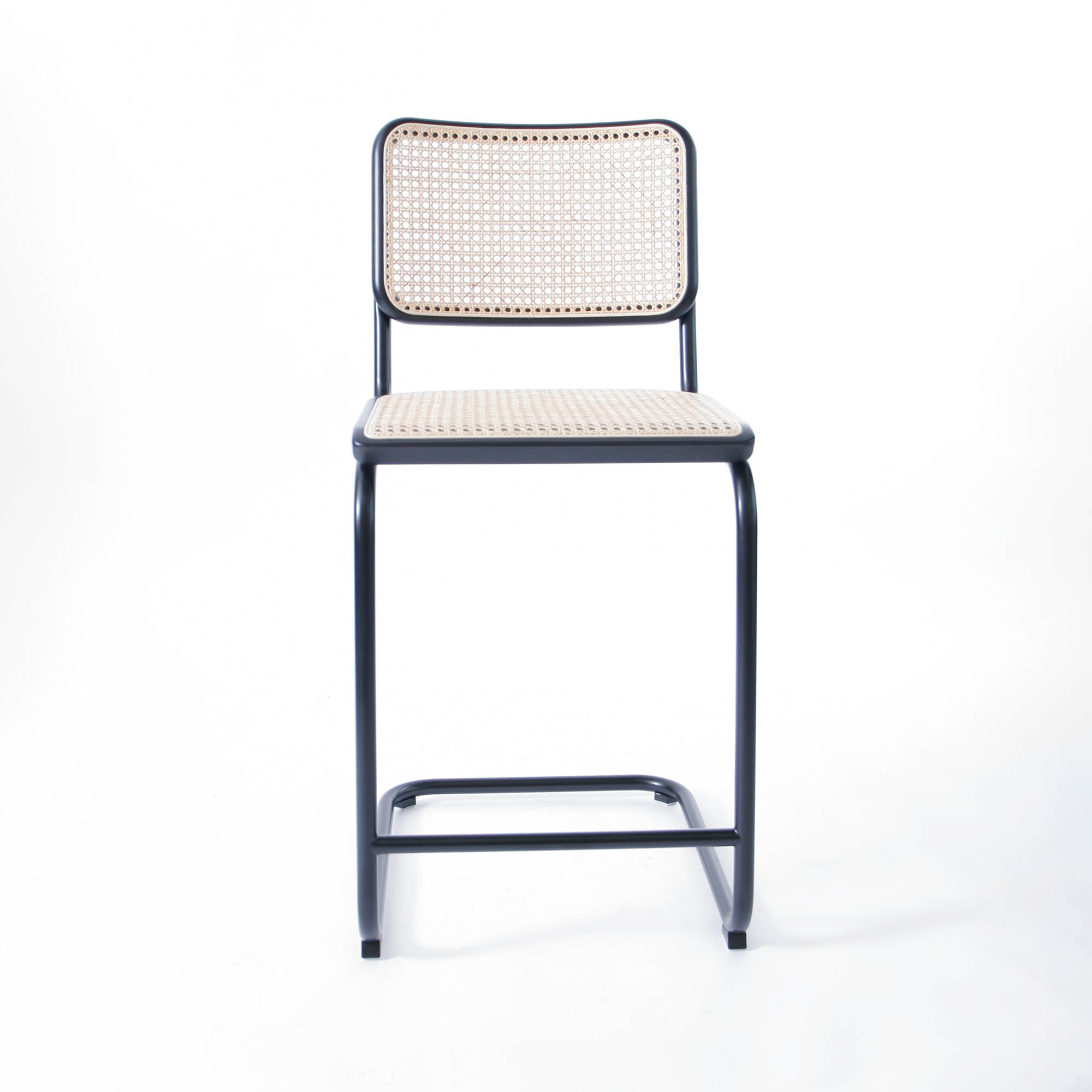 Sein dynamisches Gestell sorgt nicht nur für Stabilität, sondern bietet auch dezenten Sitzkomfort durch die federnde Konstruktion. Das Wiener Geflecht bringt Leichtigkeit ins Design und macht den Hocker auch bei längerer Nutzung angenehm luftig.