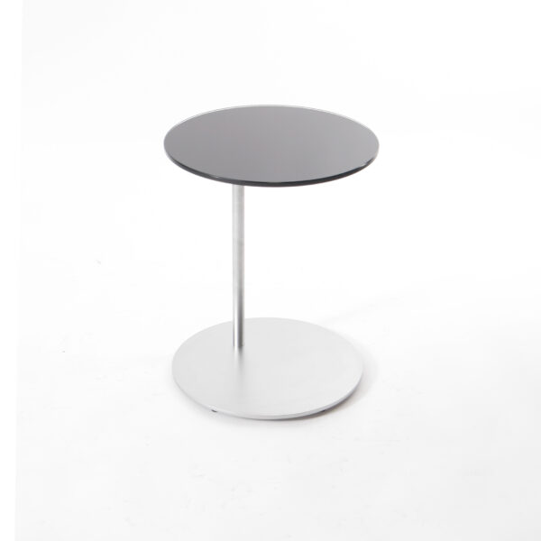Das filigrane Gestell in velourmatter Oberfläche gibt dem Stay-Server Stabilität ohne visuelle Schwere. Mit seinem schlanken Durchmesser von 40 cm ist der Tisch besonders platzsparend und dennoch präsent – ideal als Ablage für Getränke, Lektüre oder Accessoires.